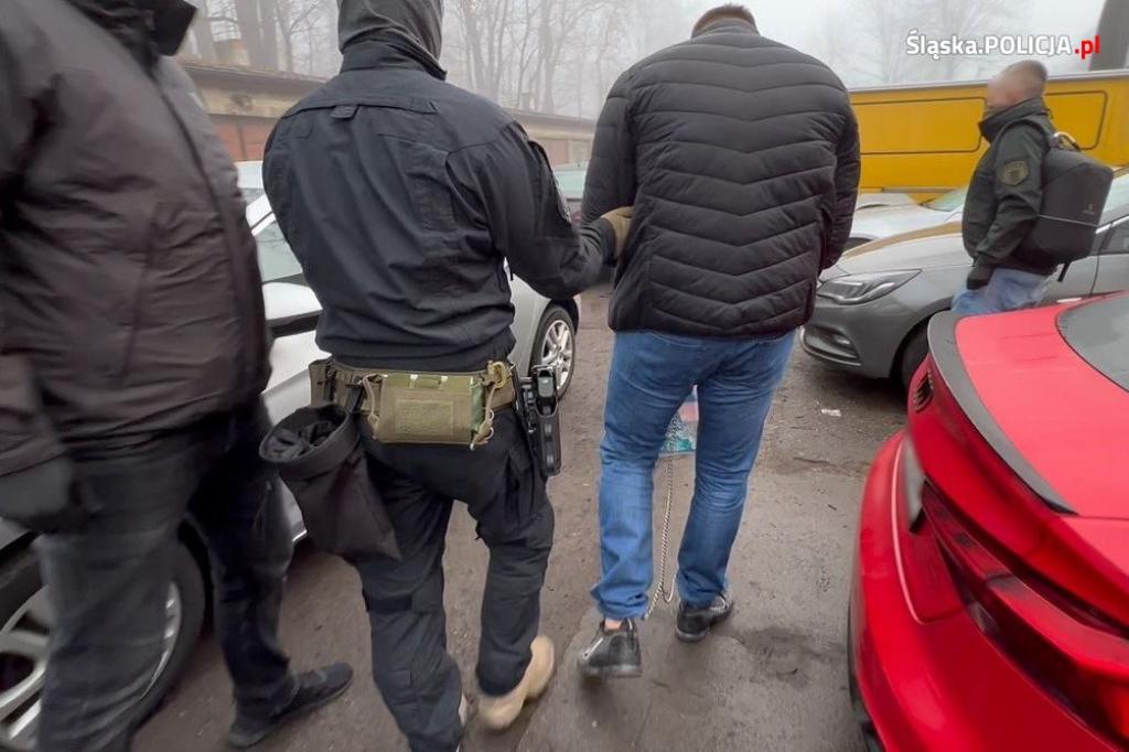 Zatrzymali go kryminalni wspólnie z policjantami z Samodzielnego Pododdziału Kontrterrorystycznego Policji w Katowicach. Policyjni komandosi o świcie weszli do mieszkania, w którym zamieszkiwał podejrzany, jednocześnie zabezpieczając pozostałe drogi jego potencjalnej ucieczki. Zaskoczony 36-latek nie stawiał żadnego oporu i błyskawicznie został zatrzymany. Następnie kryminalni przeszukali jego mieszkanie i samochód, znajdując znaczne ilości narkotyków, drogie zegarki, gotówkę oraz maczety. Śledczy przejęli kokainę, marihuanę i tabletki MDMA oraz blisko 20 tysięcy złotych w gotówce.