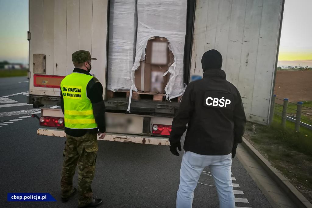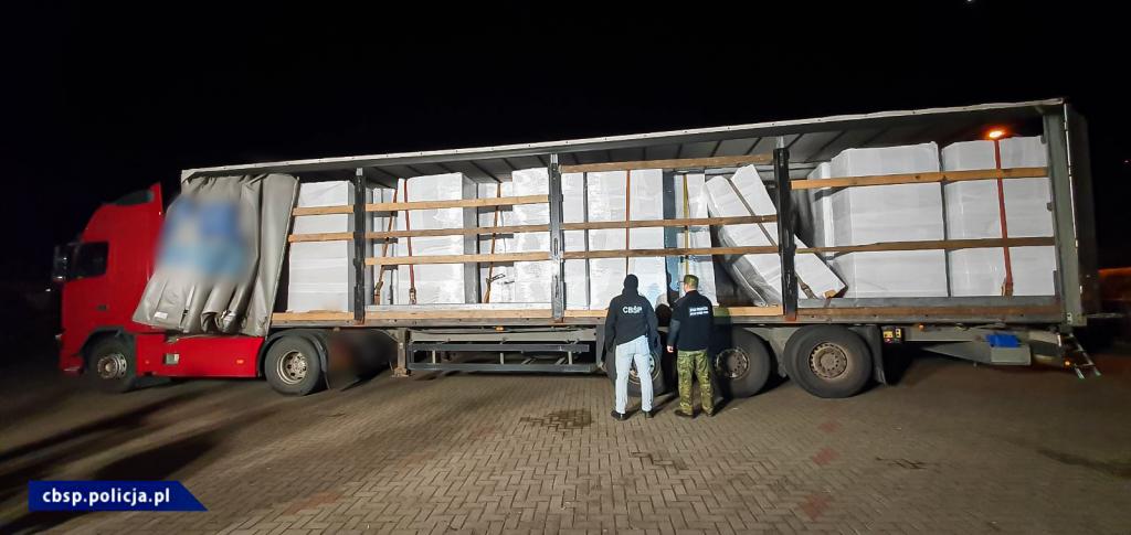 Funkcjonariusze Podlaskiego Oddziału Straży Granicznej w ramach wspólnych działań z policjantami z Zarządu w Białymstoku Centralnego Biura Śledczego Policji skontrolowali samochód ciężarowy z naczepą, który wjechał na teren Polski z Litwy. Działania przeprowadzono na drodze krajowej numer 8 w gminie Raczki (powiat suwalski). Okazało się, że w naczepie zamiast deklarowanych materiałów termoizolacyjnych, znajdują się ogromne ilości papierosów bez polskich znaków akcyzy.